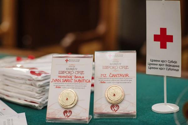 A “Széles szív” emléktáblát az önkéntes véradás népszerűsítésében elért eredményekért 2020-ban középiskolai kategóriában az “Ivan Sarić” Műszaki Iskola kapta.
